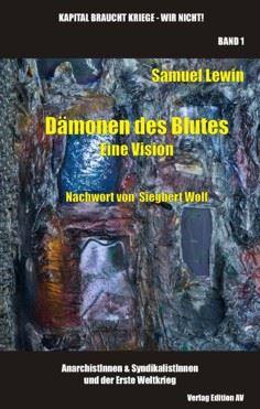 Eine Vision. Roman Reihe: Kapital braucht Kriege – wir nicht! AnarchistInnen & SyndikalistInnen und der Erste Weltkrieg - Band 1 „Es ist finstere, schreckliche Nacht. Mir graut. Wind zerrt und heult gleich Hunden, die sich von der Kette losgerissen haben, und er brüllt. Der Regen strömt, wie schwarze Bären hängen die Wolken bleiern in der Luft und machen die Nacht noch finsterer, dicker und schrecklicher. Finster ist’s, finster, um und um die schwarzen Gruben, die Löcher, die hohlen Schützengräben und die Gräber. Das vorliegende, nach annähernd neunzig Jahren erstmals wieder aufgelegte Antikriegsepos „Dämonen des Blutes. Eine Vision“ von Samuel Lewin (1890-1959) gehört ebenbürtig in die Reihe der nach dem Ersten Weltkrieg entstandenen pazifistischen bzw. antimilitaristischen Prosatexte.